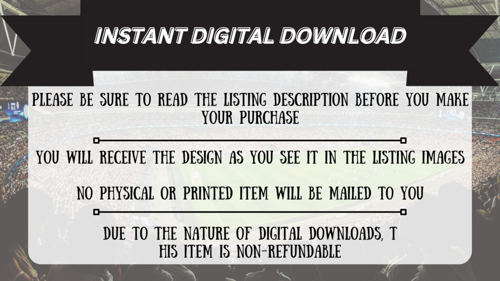 DO NOT PURCHASE THIS LISTING if you would like this in a different color or design, as I cannot refund your purchase since the file is available for immediate download.