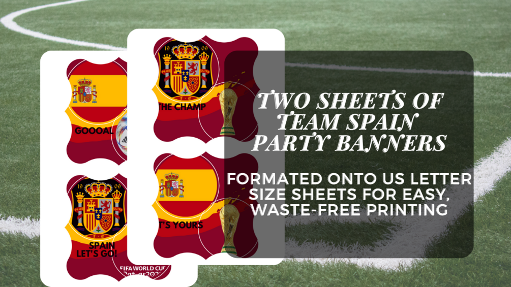This listing is for a printable Spain World Cup banner set. These are digital files that will be available for immediate download once payment is received and cleared.